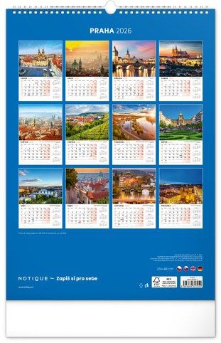 Kalendář nástěnný Praha 2026, 33 x 46 cm / PGN-35725-L