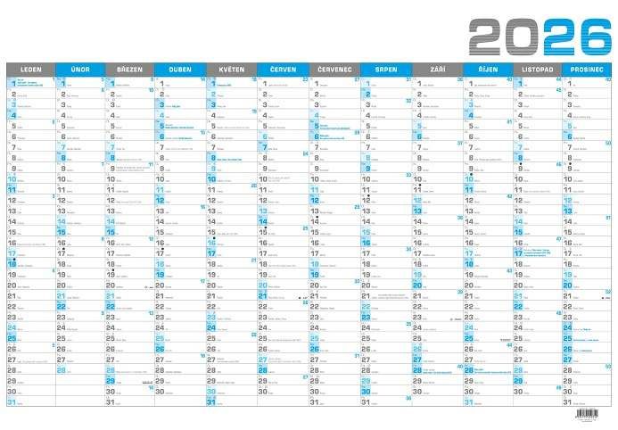 Kalendář nástěnný roční B1 - modrý 2026 / 67cm x 96,4cm / BKA4-26