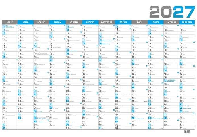 Kalendář nástěnný roční B1 - modrý 2027, 96,4cm x 67cm, BKA4-27