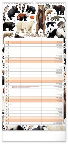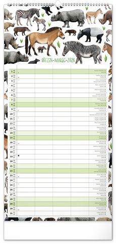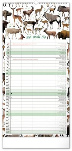 Kalendář nástěnný Rodinný plánovací Animalium 2026, 21 x 42 cm / PGN-35775-L