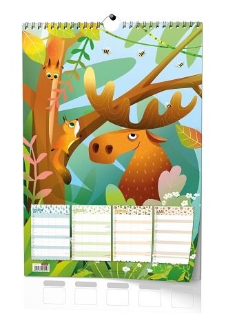 Přehledný nástěnný kalendář pro to správné rodinné plánování. Na zadním kartonu prostor na zapsání jmen jednotlivých členů rodiny (nemusíte přepisovat jména na každý měsíc) a velký prostor na poznámky.