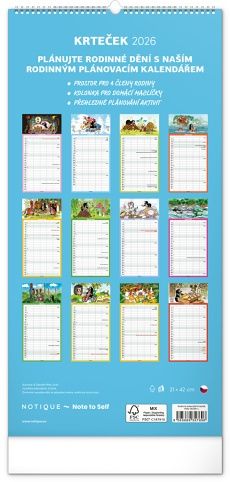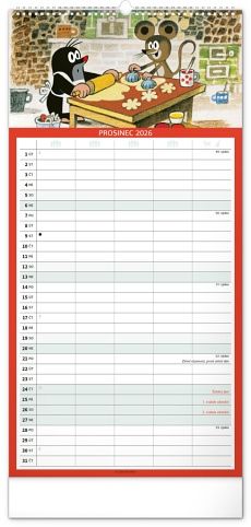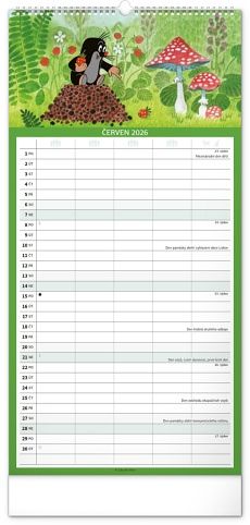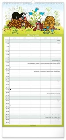 Kalendář nástěnný Rodinný plánovací Krteček 2026, 21 x 42 cm / PGN-35769-L