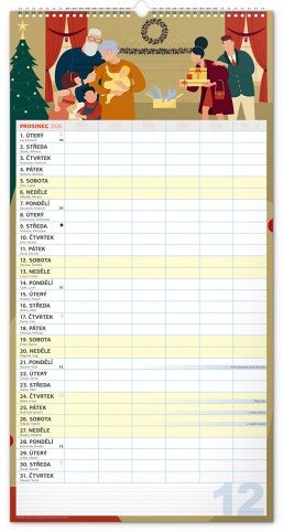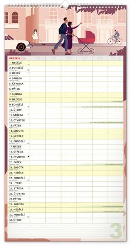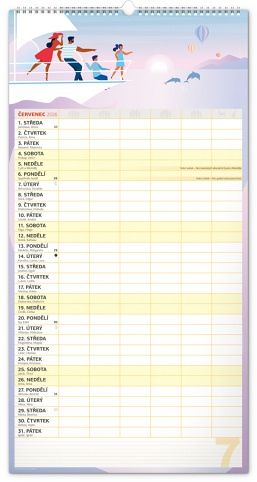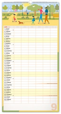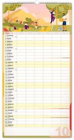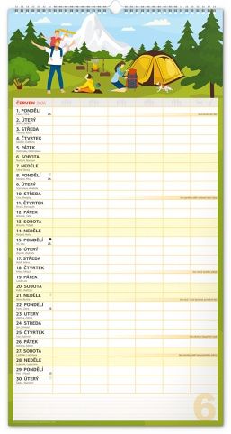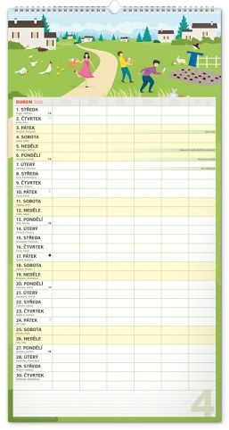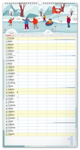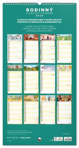 Velký formát kalendáře pro celou rodinu. České kalendárium a samostatný plánovač aktivit až pro šest členů domácnosti doplňují veselé grafické motivy pro každé roční období. Díky dostatečnému prostoru pro poznámky vám neuteče žádná důležitá událost.