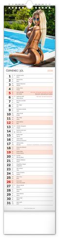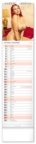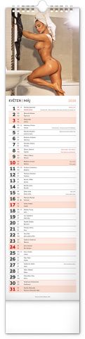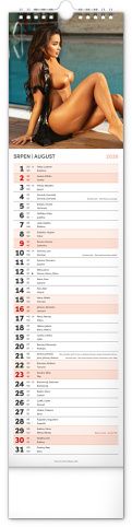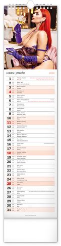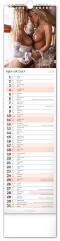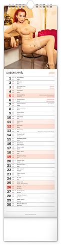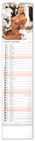 Pikantní erotika na dvanácti fotografiích úzkého formátu nástěnného kalendáře. Snímky odvážných dívek doplňuje české a slovenské kalendárium.