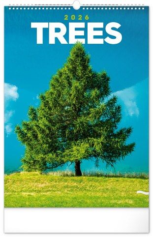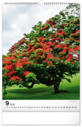 Nástěnný kalendář s fotografiemi pestrých scenérií s dominantami majestátních stromů z celého světa. Fotografie jsou doplněny univerzálním kalendáriem na bílém pozadí.