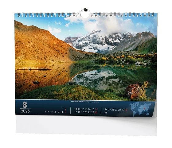 Nástěnný kalendář s obrázky působivých světových národních parků.