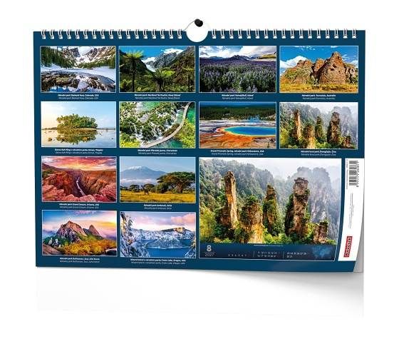 Nástěnný kalendář s obrázky působivých světových národních parků.