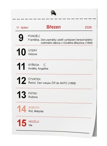 Jazykové kalendárium: české týdenní jmenné kalendárium