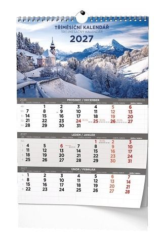 Kalendář nástěnný - Tříměsíční - A3 - Obrázkový 2027, 32cm x 45cm, BNC8-27