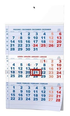 Praktický nástěnný kalendář s tříměsíčním kalendáriem a posuvným jezdcem vhodný do Vaší kanceláře.
