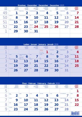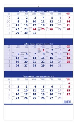 Tříměsíční kalendář modrý 2026 Vyrobeno v ČR