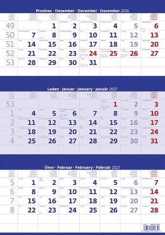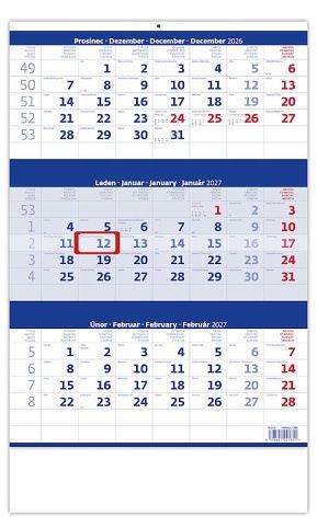 Kalendář nástěnný Tříměsíční modrý 2027, 31,5cm x 45cm, N205-27