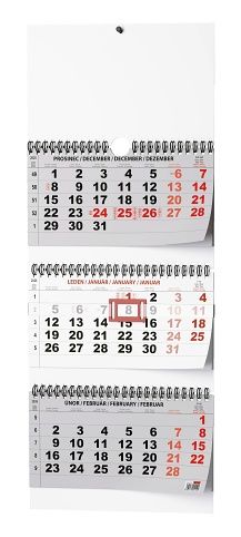 Praktický skládací nástěnný kalendář s tříměsíčním kalendáriem a posuvným jezdcem vhodný do Vaší kanceláře.