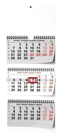 Praktický skládací nástěnný kalendář s tříměsíčním kalendáriem a posuvným jezdcem vhodný do Vaší kanceláře.