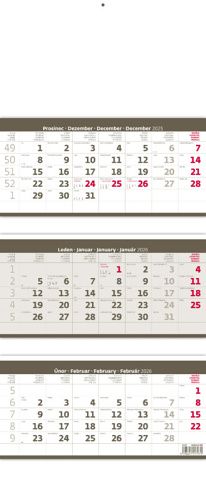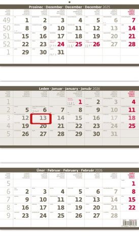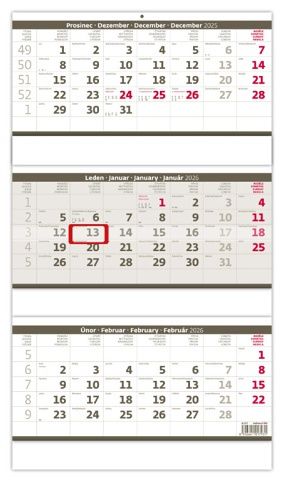 Tříměsíční skládaný kalendář šedý 2026 Vyrobeno v ČR