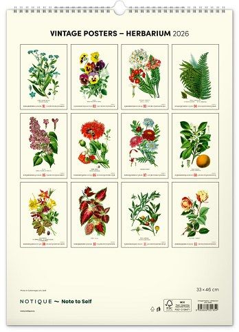 Kalendář nástěnný Vintage plakáty – herbář 2026, 33 x 46 cm / PGN-35185