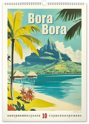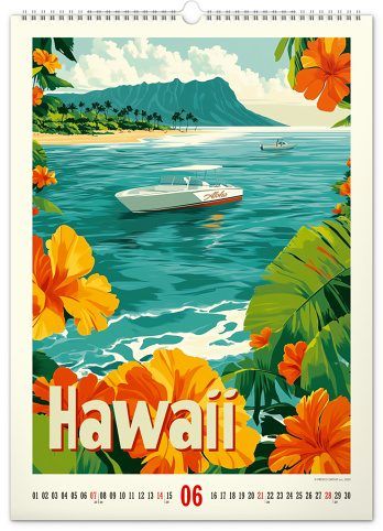 Zasněte se nad krásou tropických rájů s atmosférou starých časů. Nástěnný kalendář doplňuje jednoduché kalendárium na bílém pozadí.