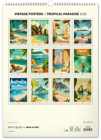 Kalendář nástěnný Vintage plakáty – tropické ráje 2026, 33 x 46 cm / PGN-35183