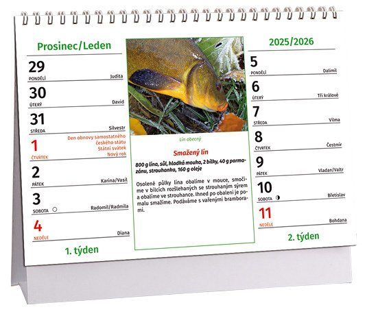 Kalendář stolní 14denní Rybář, rybí speciality 2026 / 23cm x 16cm / K817