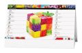 Stolní kalendář se čtrnáctidenním kalendáriem a pestrobarevnými motivy.