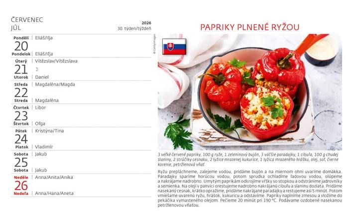 Stolní kalendář Česko-slovenská kuchařka 2026 Vyrobeno v ČR