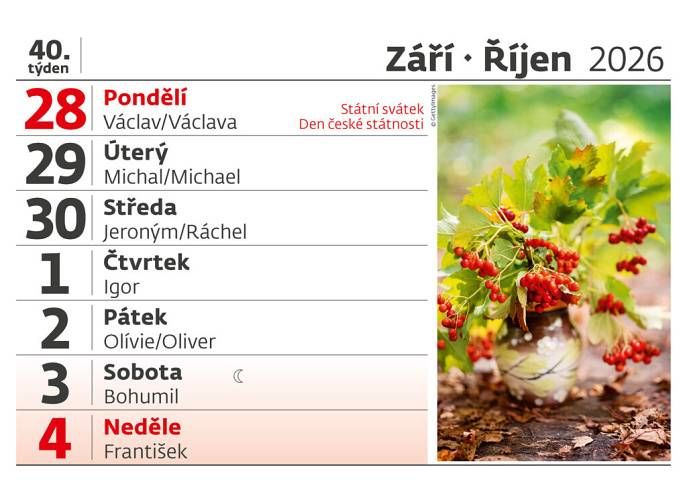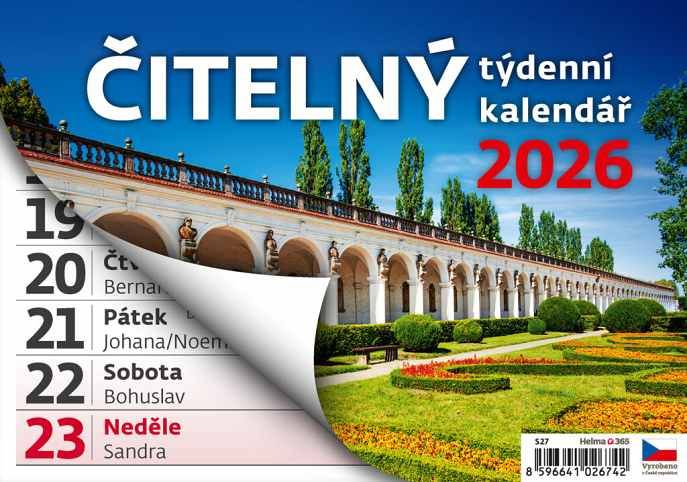 Čitelný týdenní kalendář 2026 Vyrobeno v ČR