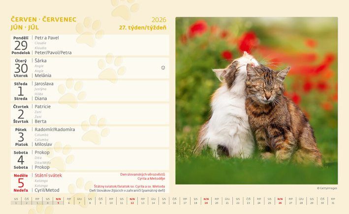 Kalendář stolní Kočky/Mačky 2026 / 16,9cm x 22,6cm / S33-26