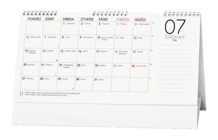 Výjimečný stolní kalendář s přehledným měsíčním kalendáriem a prostorem na poznámky.