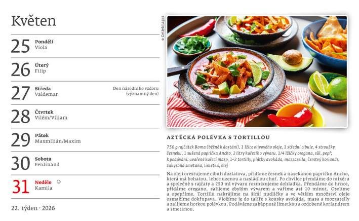 Kalendář Mezinárodní kuchařka 2026 Vyrobeno v ČR