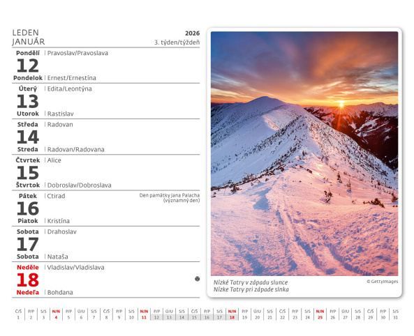 Stolní kalendář MiniMax České a slovenské hory 2026 Vyrobeno v ČR