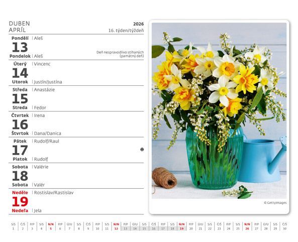 Stolní kalendář MiniMax Květiny 2026 Vyrobeno v ČR