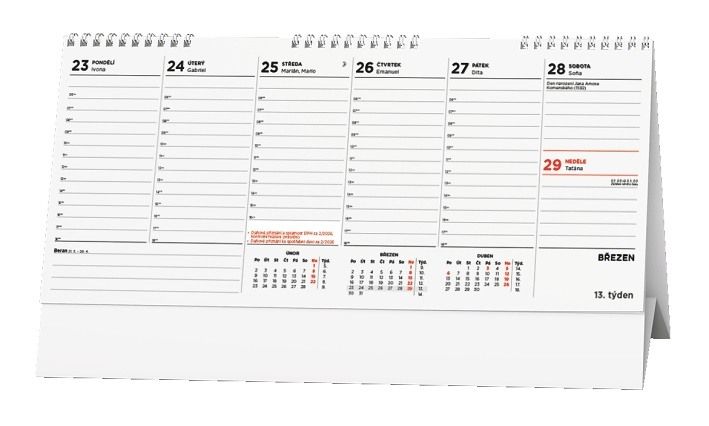 Stolní plánovací kalendář s časy a velkým prostorem na poznámky je skvělý doplněk pro Vaše plánování práce či volného času.