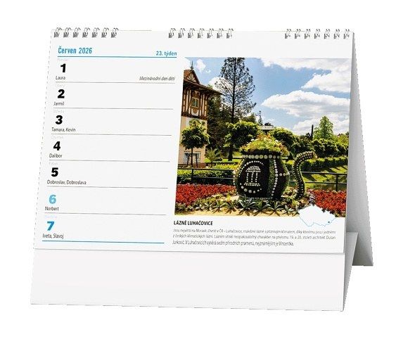 Stolní kalendář s týdenním kalendáriem s obrázky známých míst v naší zemi.