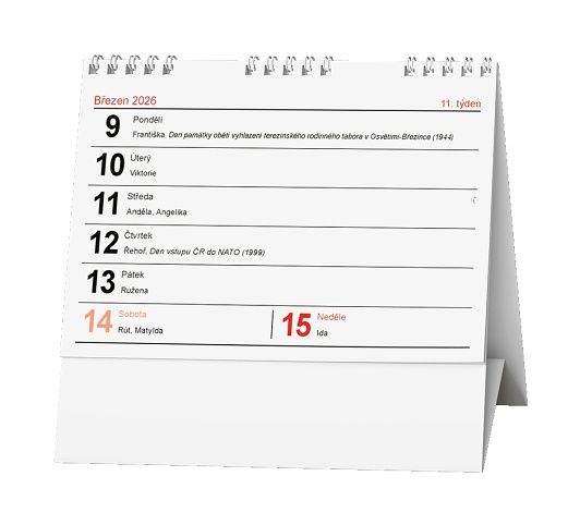 Jednoduchý stolní kalendář s barevným motivem s týdenním kalendáriem. Malý formát a trendy motiv oživí Váš den.