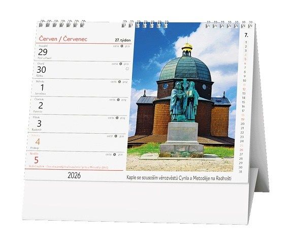 Stolní kalendář s týdenním kalendáriem s obrázky scenérií České republiky.