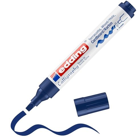 Kaligrafický popisovač 1455, ocelově modrý použijte pro permanentní ozdobné psaní a zdobení drsných nebo porézních povrchů. Ideální je pro psaní a kreslení na terakotu, dřevo, papír, plátno. Popisovač je vybaven speciálním kaligrafickým hrotem, s nímž je možné tvořit od jemných až po široké tahy. Vytváří šířku stopy v rozsahu od 1 do 5 mm. Obzvláště vhodný je pro studenty kaligrafie, doporučujeme ho ale i pro jednoduchou domácí kreativu. Barevný pigmentový inkoust je rychleschnoucí, extrémně odolný vůči světlu a odolný vůči rozmazání, opotřebení a povětrnostním vlivům. Neprosakuje skrz papír.