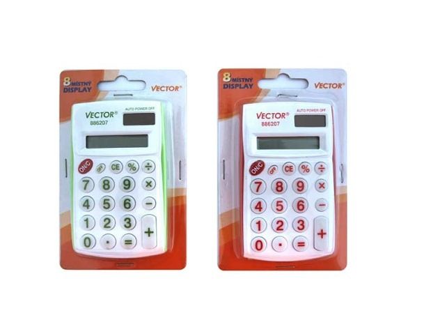 Základní 8 místná kalkulačka značky VECTOR s duálním zdrojem napájení, pohodlná obsluha, menší rozměr, velký a čitelný displej Funkce: - sčítání a odčítání - násobení - dělení - procenta - paměť kalkulačky - řetězové počítání - tlačítko on/off Barvy: růžová a zelená Napájení: solární a bateriové Není-li kalkulačka delší dobu v provozu, vyjměte baterie. Nenabíjejte baterie, které k tomu nejsou určené. Nemíchejte dohromady staré a nové baterie, ani dobíjecí a normální baterie. Vybité baterie vyjměte, použité baterie vyhazujte pouze do tříděného odpadu! Baterie vkládejte dle správné polarity (+/-). Obal výrobku uschovejte pro další informace. Uvedená cena je za 1 ks. Součástí kalkulačky je návod.
