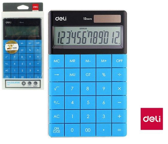 - stolní kalkulátor se snadno čitelným, velkým 12 místným displejem - barva modrá- akrylový povrch- rozměry 165 x 100 x 15mm- hmotnost: 205g- knoflíková baterie 1,5 V- plastová tlačítka- duální napájení - baterie / solární- baterie je součástí balení- kalkulačka obsahuje základní funkce, procenta, změnu znaménka, přičtení a odečtení zobrazeného čísla do paměti, vyvolání obsahu paměti, přičítá předchozí výsledek, automatické vypnutí- ke každé kalkulačce je přiložený návod