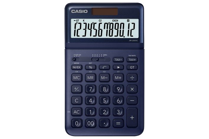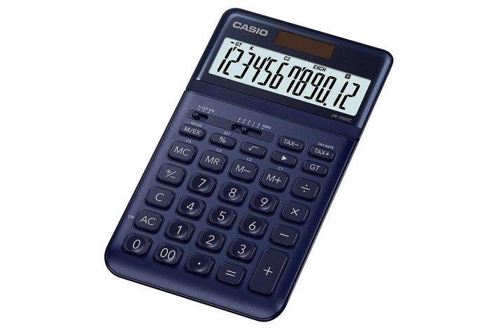 Designový stolní kalkulátor Velký, přehledný a naklápěcí 12ti místný LCD displej Výpočet procent Výpočet DPH Přepočet měny Výpočet % zisku Celkový součet Výřez Nastvení desetinných míst Tlačítko opravy zadání Tlačítko dvojité nuly Nezávislá paměť Napájení: Duální solár/bateriové Rozměry: 1,1x109x184mm