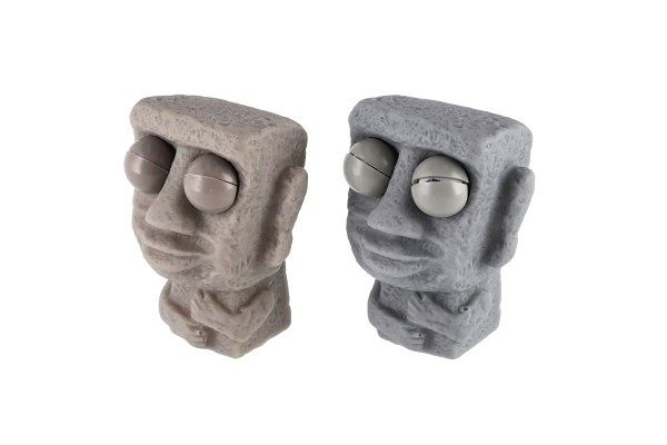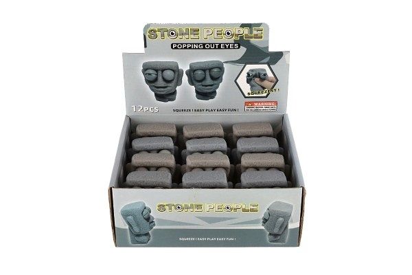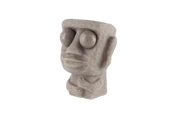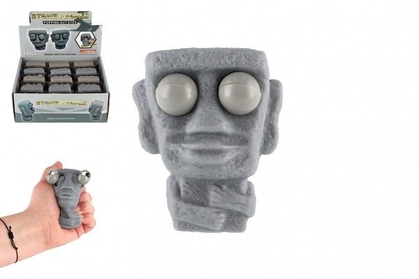Kamenná hlava je z měkké gumy a umožňuje tak snadné stlačení a mačkání, což poskytuje okamžitou úlevu od stresu a napětí. Při zmáčknutí "vyvalí" hlava oči.