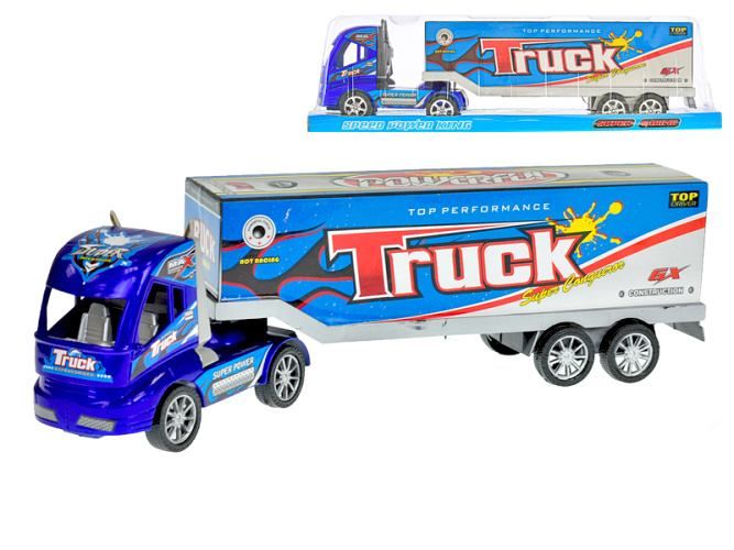 Kamion 35cm modrý na setrvačník v krabičce