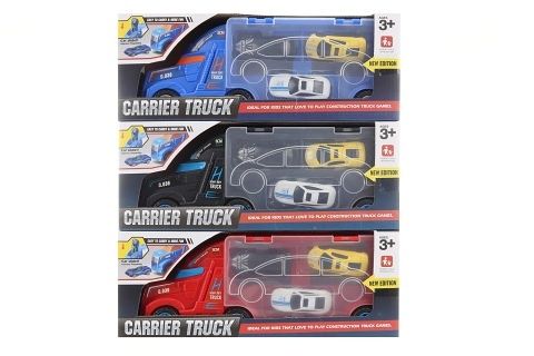 Plastový kamion s kovovými autíčky. Baleno v krabici. Rozměry balení cca 31,5x12x7 cm. Velikost autíčka cca 6,5 cm. Věk 3+