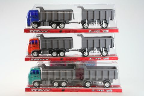 Kamion se sklápěcí korbou a přívěsem, který je taktéž sklápěcí. Délka cca 45cm. věk 3+
