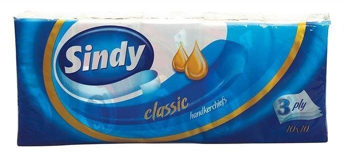 Kapesníky, papírové, 3vrstvé, 10x10 ks, "Sindy", classic