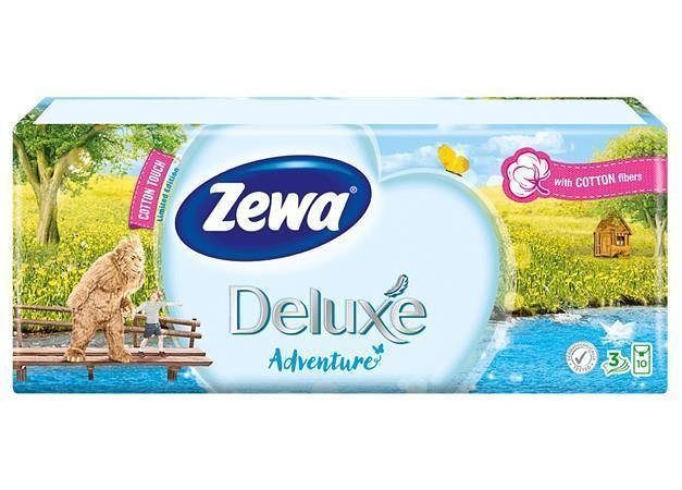 Kapesníky, papírové, 3vrstvé, 10x10 ks, ZEWA "Deluxe", bez vůně