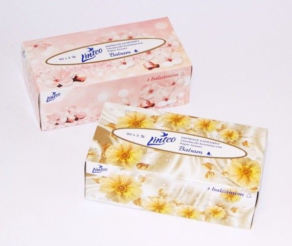 Kapesníky v krabičce LINTEO 3-vrstvé, 90 ks s balzámem (30083)