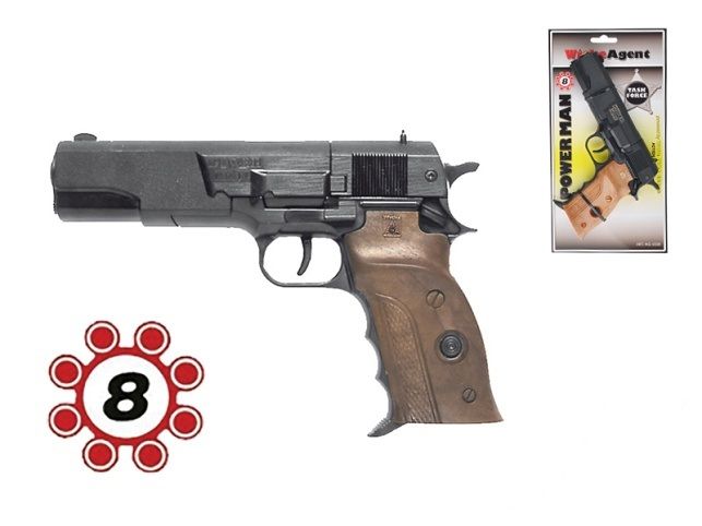 Pistole Power Man o velikosti 22 cm na kapsle 8 ran. S touto skvělou kapslovkou si vaše dítě užije spoustu zábavy. Vhodné na hraní venku i doma.