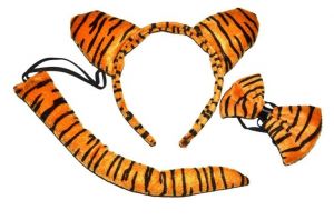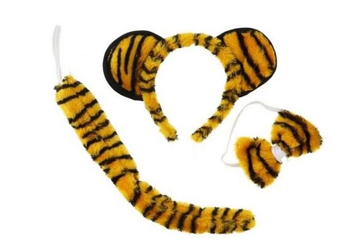 Karnevalová maska tygra skládající se z čelenky z ouškama, ocásku a motýlka.