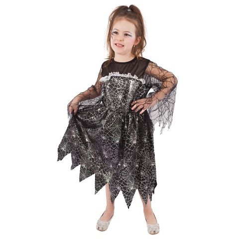 Magický karnevalový kostým pro malé čarodějnice! Kostým ve velikosti M je určen pro holčičky ve věkovém rozmezí 6-8 let (116-128 cm). Černé šaty jsou dekorovány stříbrnou pavučinkou. S tímto úchvatným kostýmem se zaručeně staneš hvězdou karnevalu i Halloweenu!