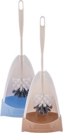 Kartáč na WC s držákem. Držák je navržen tak, aby kartáč zůstal viset nad odkapávačem, takže rychle schne, čímž je zajištěna maximální hygiena.